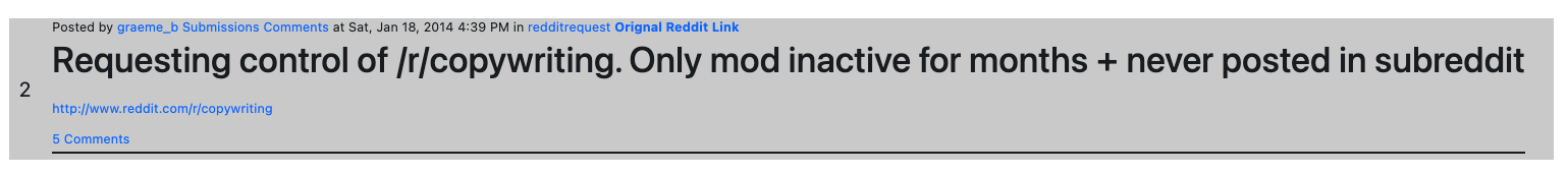 1/18/14: Still trying to collect subreddits, this time r/copywriting.